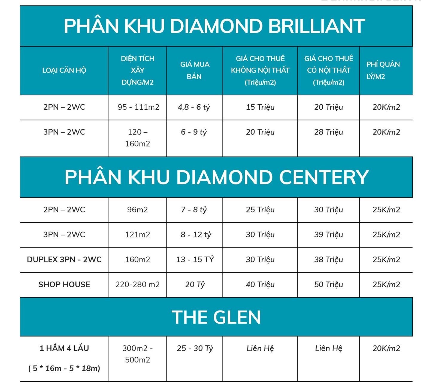 Quy mô | 8.577 căn hộ với 04 phân khu: Ruby – Emerald – Diamond – The Glen |
