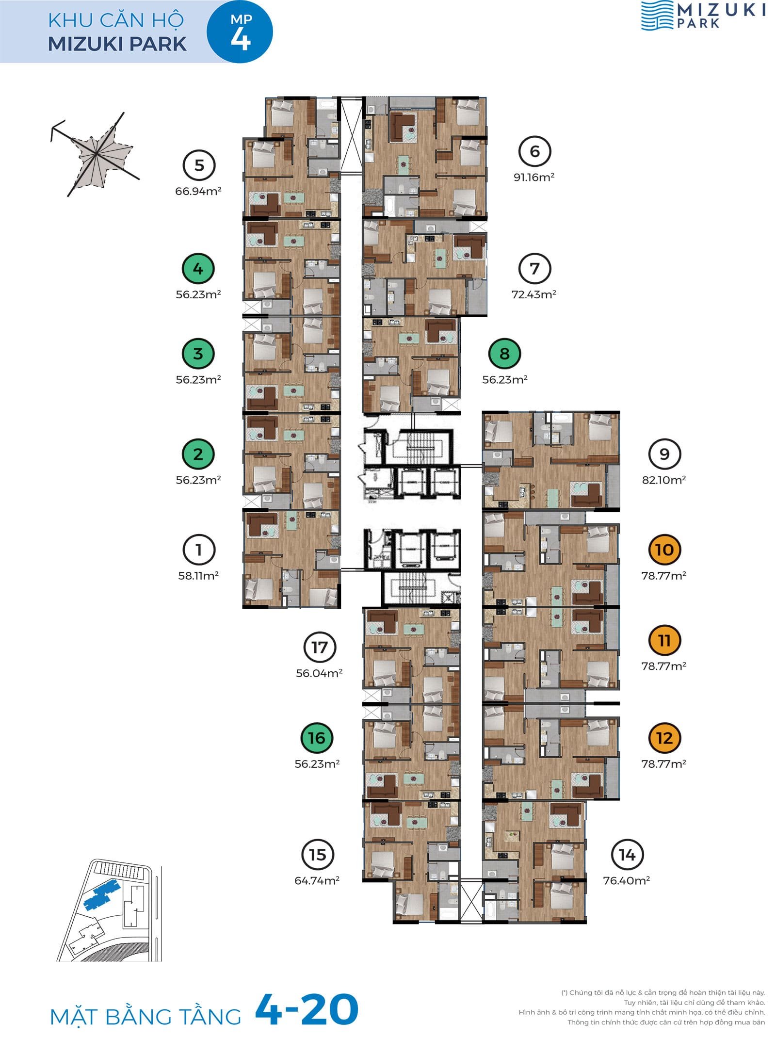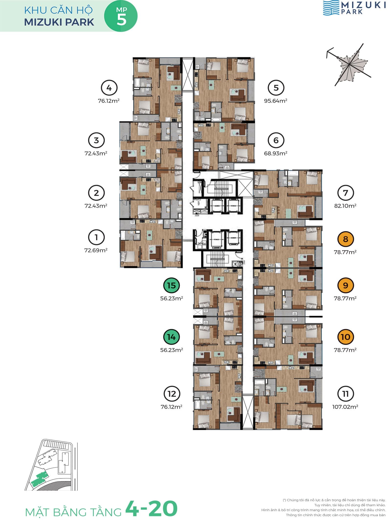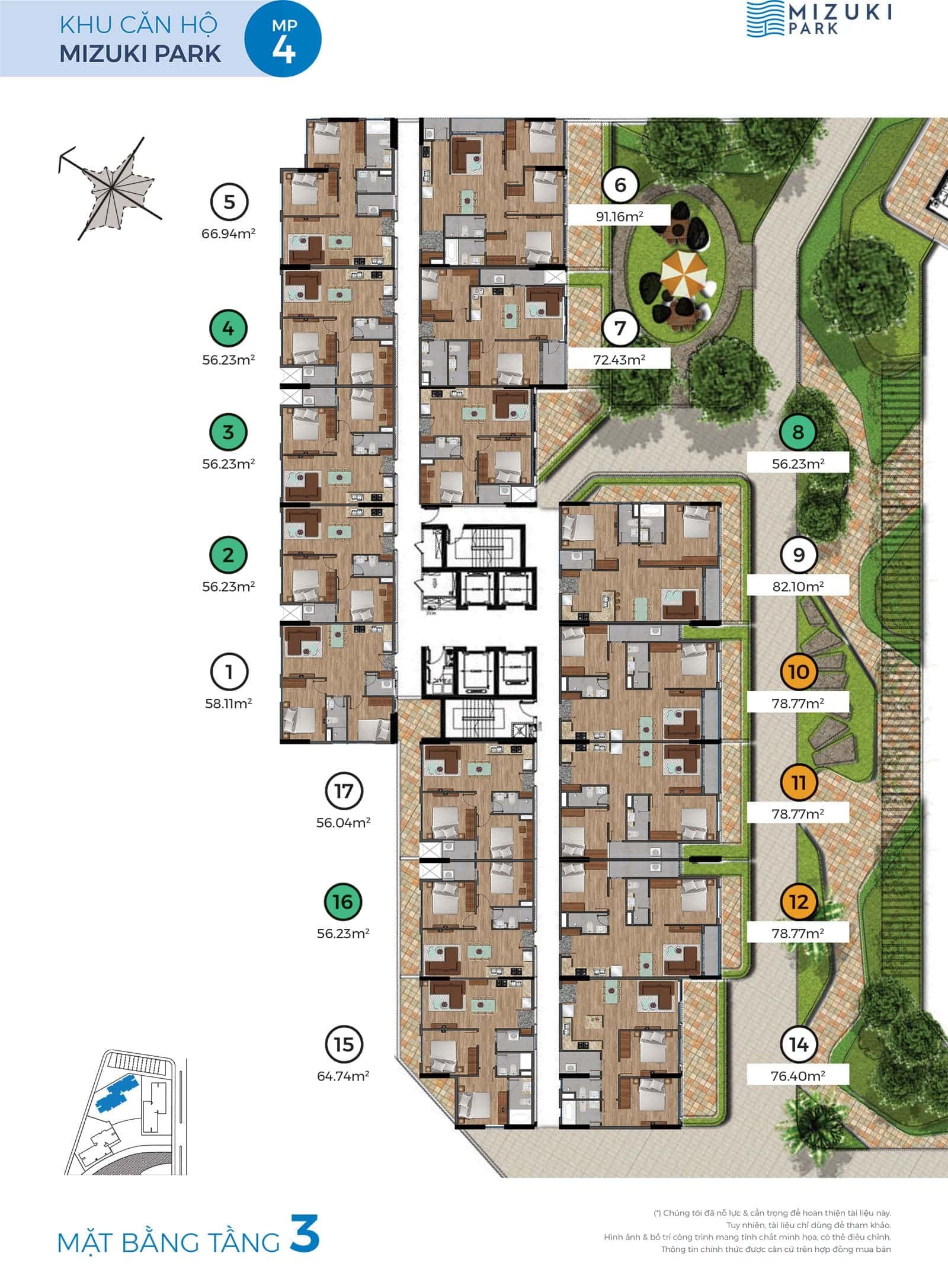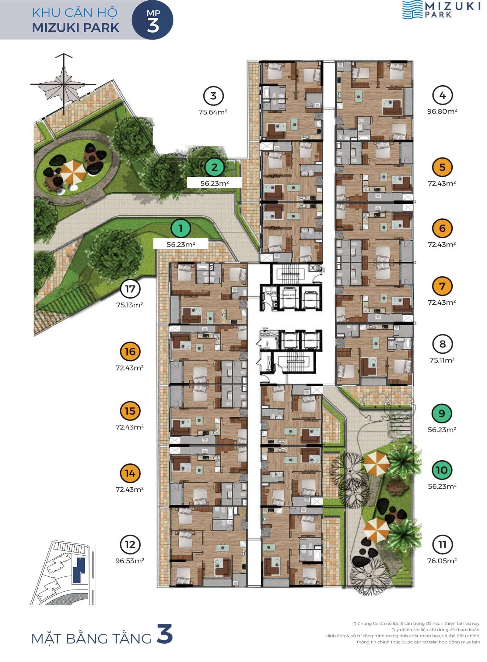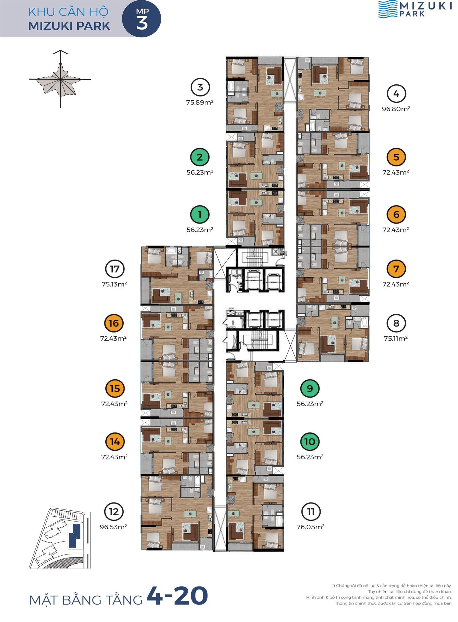 • Căn hộ Mizuki Park triển khai giai đoạn 1 gồm 5 block căn hộ cao 20 tầng tổng số 1.440 căn hộ.