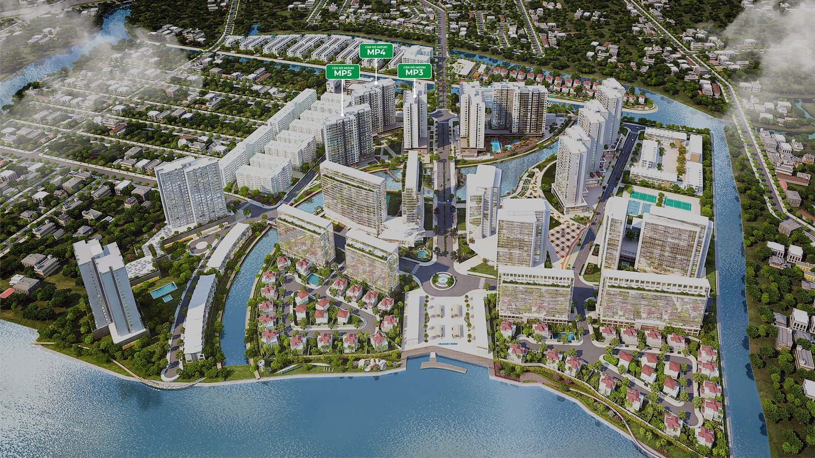 Flora Mizuki tiếp tục mang đến trải nghiệm sống đẳng cấp với ba tòa căn hộ biệt lập MP3 MP4 MP5 được tọa lạc tại những vị trí chiến lược trên một trong những trục đường chính của khu đô thị Mizuki Park. Với ưu thế vô song về cảnh quan, ba tòa này đều hướng ra 3 mặt view sông và khu kênh đào rộng 17000m2, tạo nên một không gian sống tận hưởng vẻ đẹp tự nhiên.