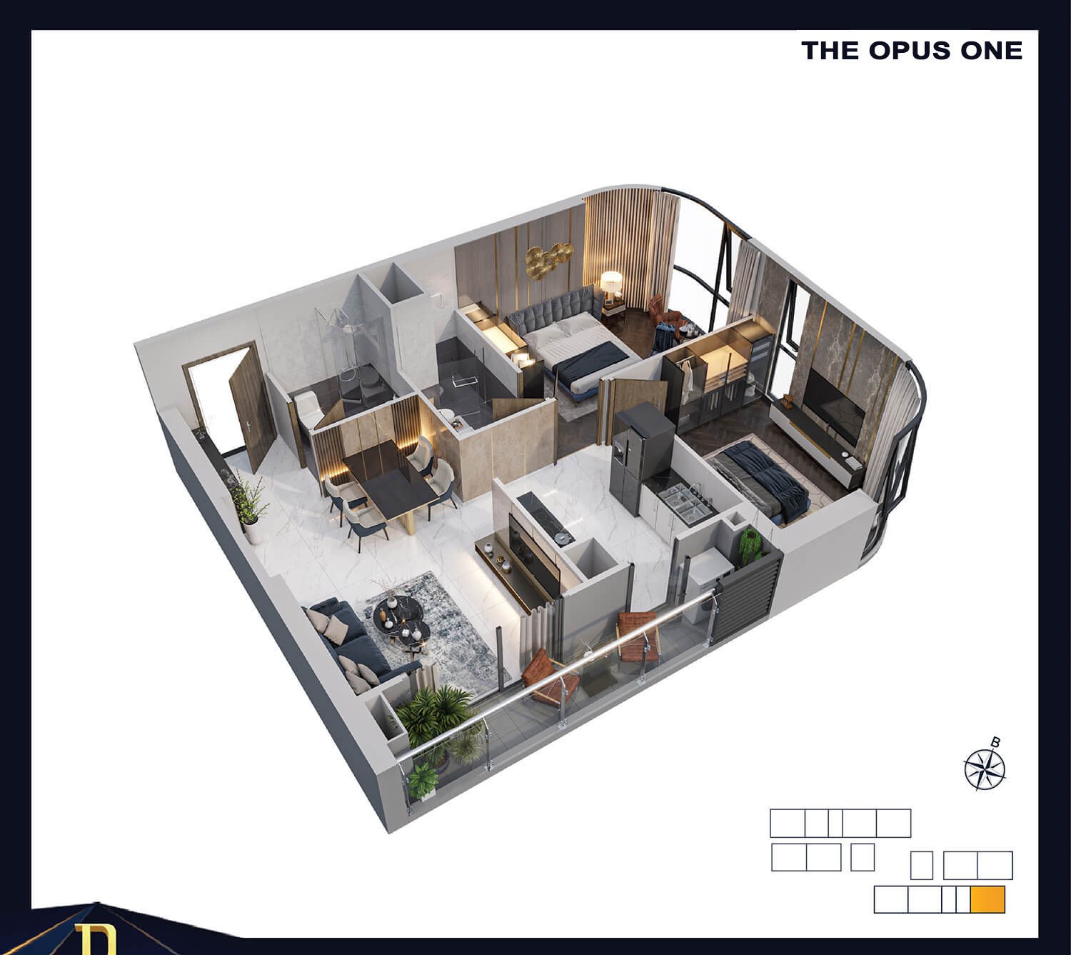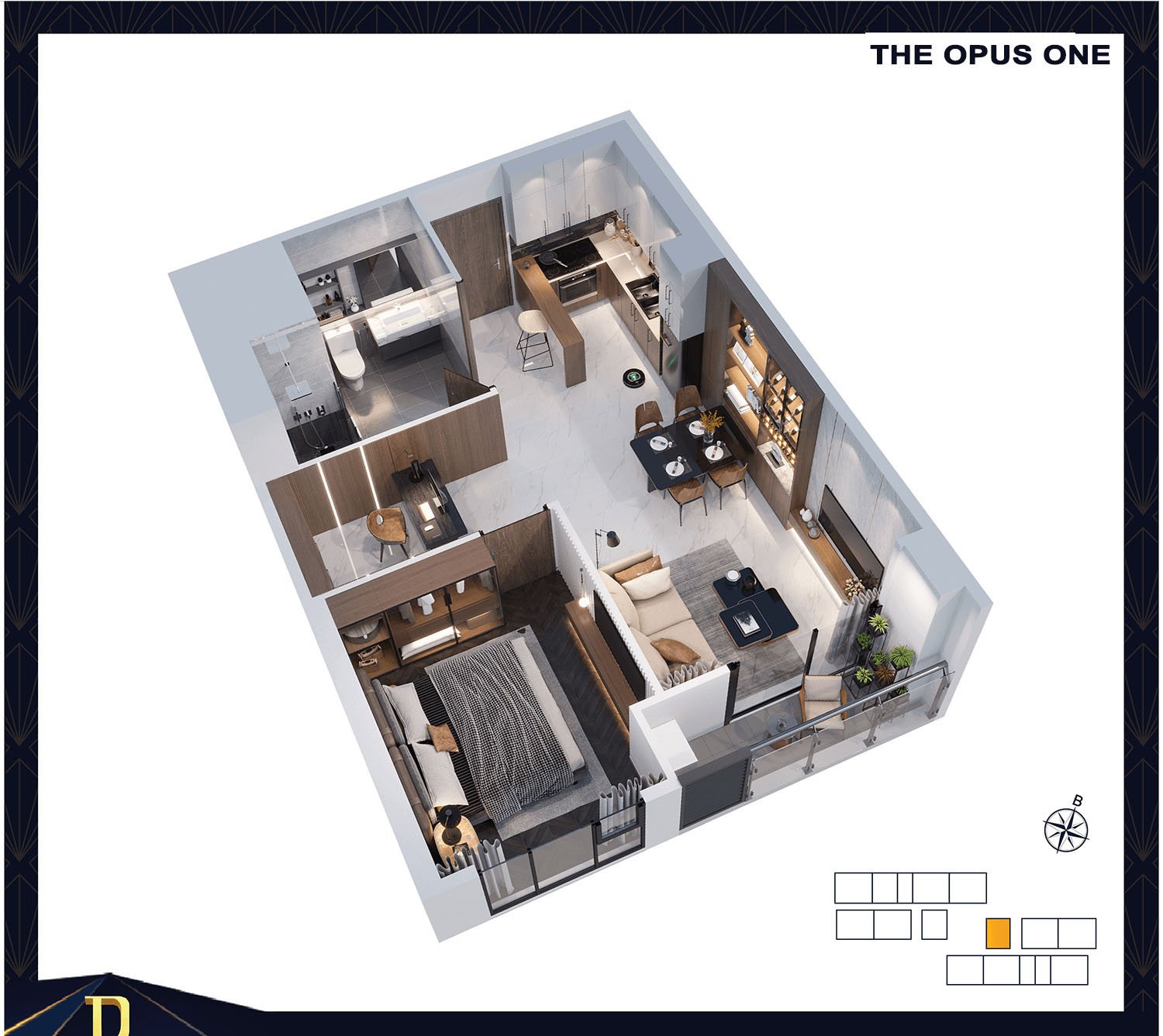 Phân khu căn hộ The Opus One mang ngôn ngữ thiết kế đẳng cấp vượt trội với phong cách resort tiêu chuẩn. Đặc biệt phân khu căn hộ này còn được thừa hưởng vị trí kim cương đắt giá mà đại đô thị Vinhomes Grand Park mang lại. Địa thế phong thủy có 1 – 0 – 2 đón đầu sự thịnh vượng và may mắn. Ngoài ra, Phân Khu The Opus One còn tọa lạc tại trung tâm đại đô thị Vinhomes Grand Park, nằm kế bên TTTM Vincom Mega Mall lớn nhất miền Nam, gần Ga Vinbus.