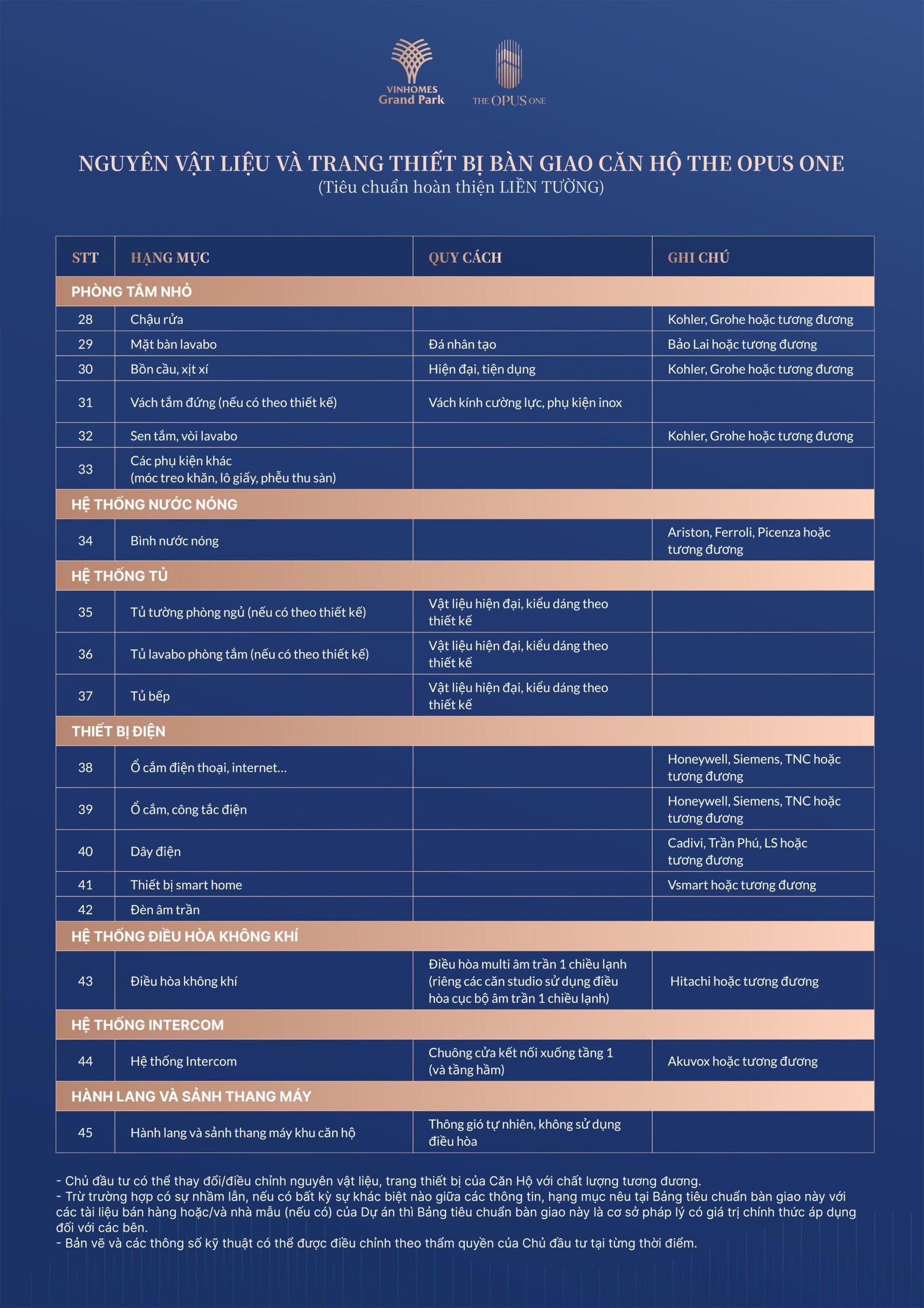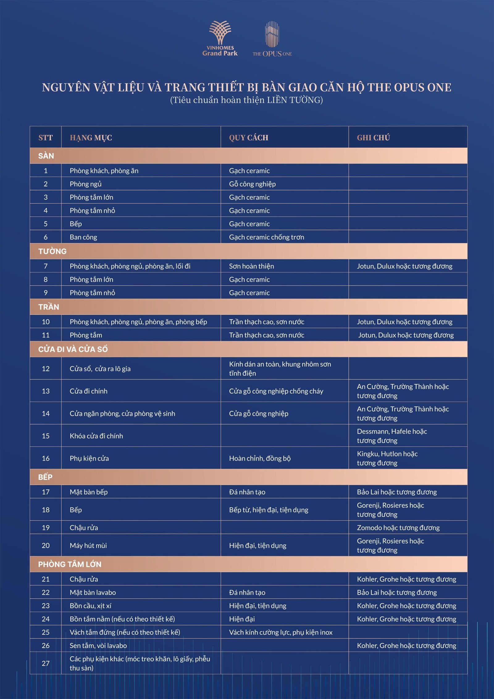 TRANG THIẾT BỊ BÀN GIAO CĂN HỘ